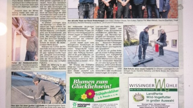 Hochmotivierte und gut ausgebildete Mitarbeiter mit vollem Einsatz – das gab den Impuls für Ulrich Bosse und sein Team, die Angebotspalette zu erweitern und somit ihren Kunden alle Facharbeiten rund ums Dach aus einer Hand anzubieten.